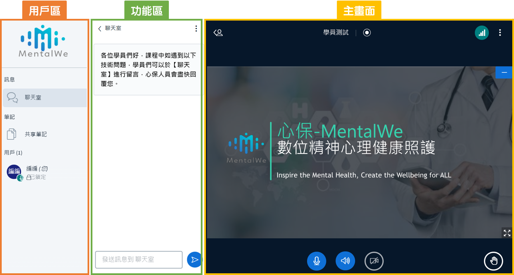 * 主持人權限包含「移除用戶」及「用戶靜音」,簡報者無此權限。